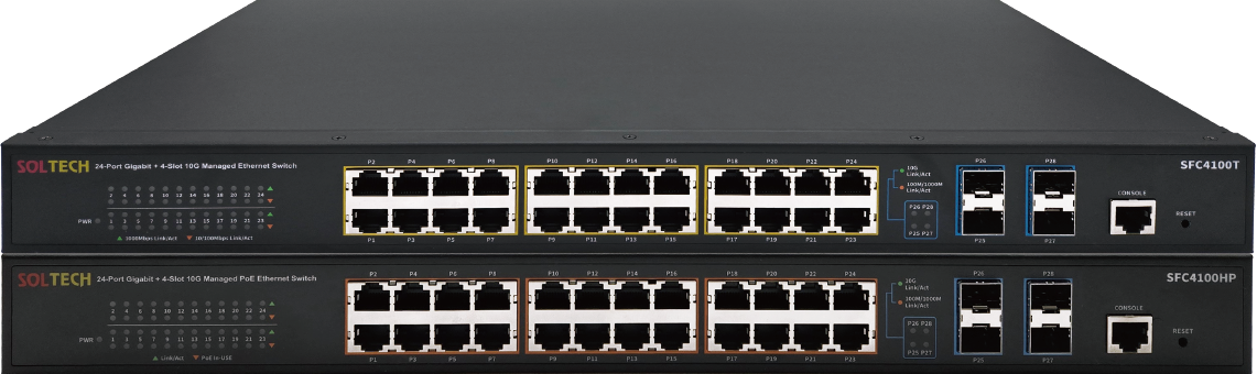 24 TP(10/100/1000Mbps) + 2 SFP(1Gbps)